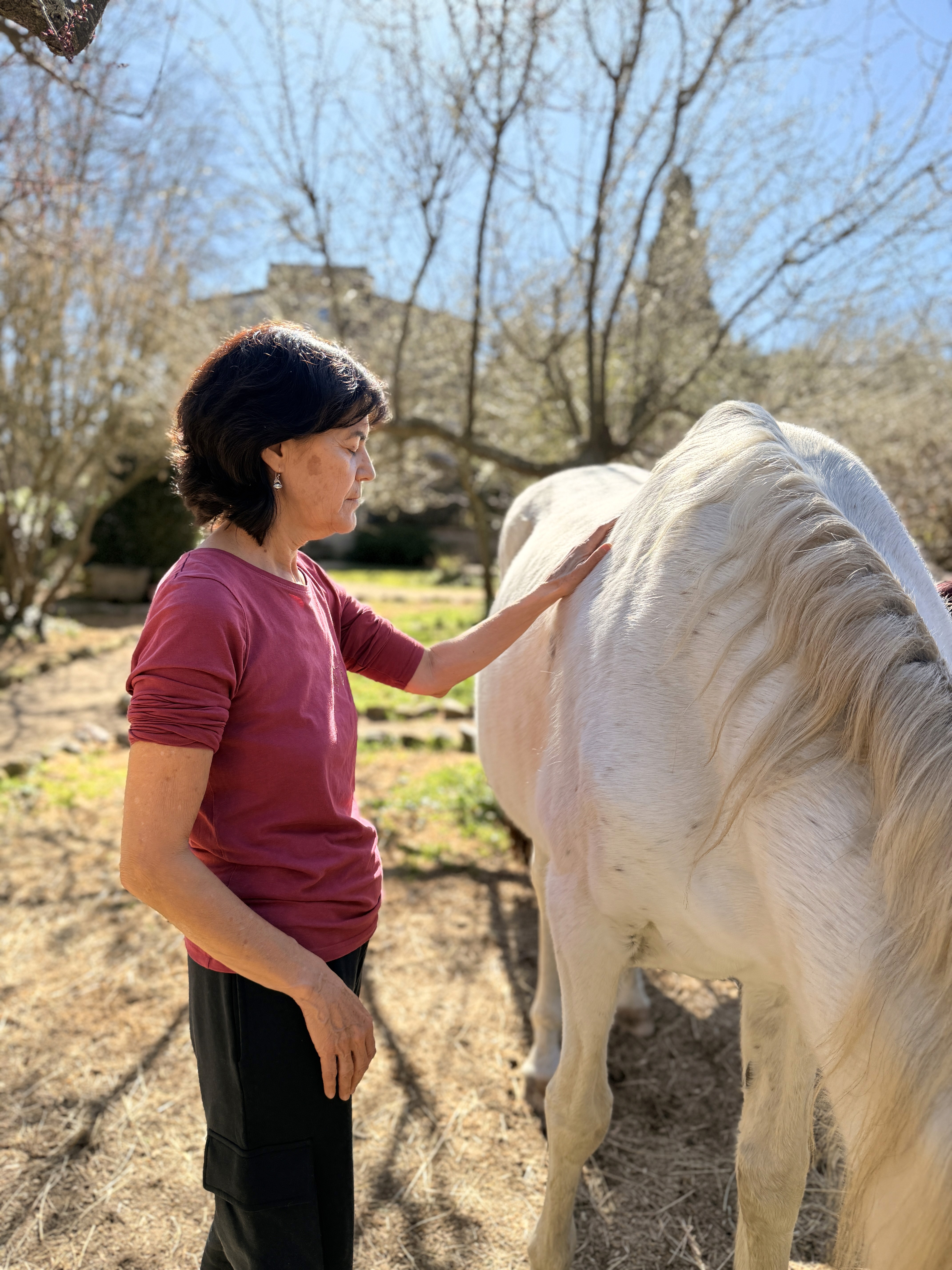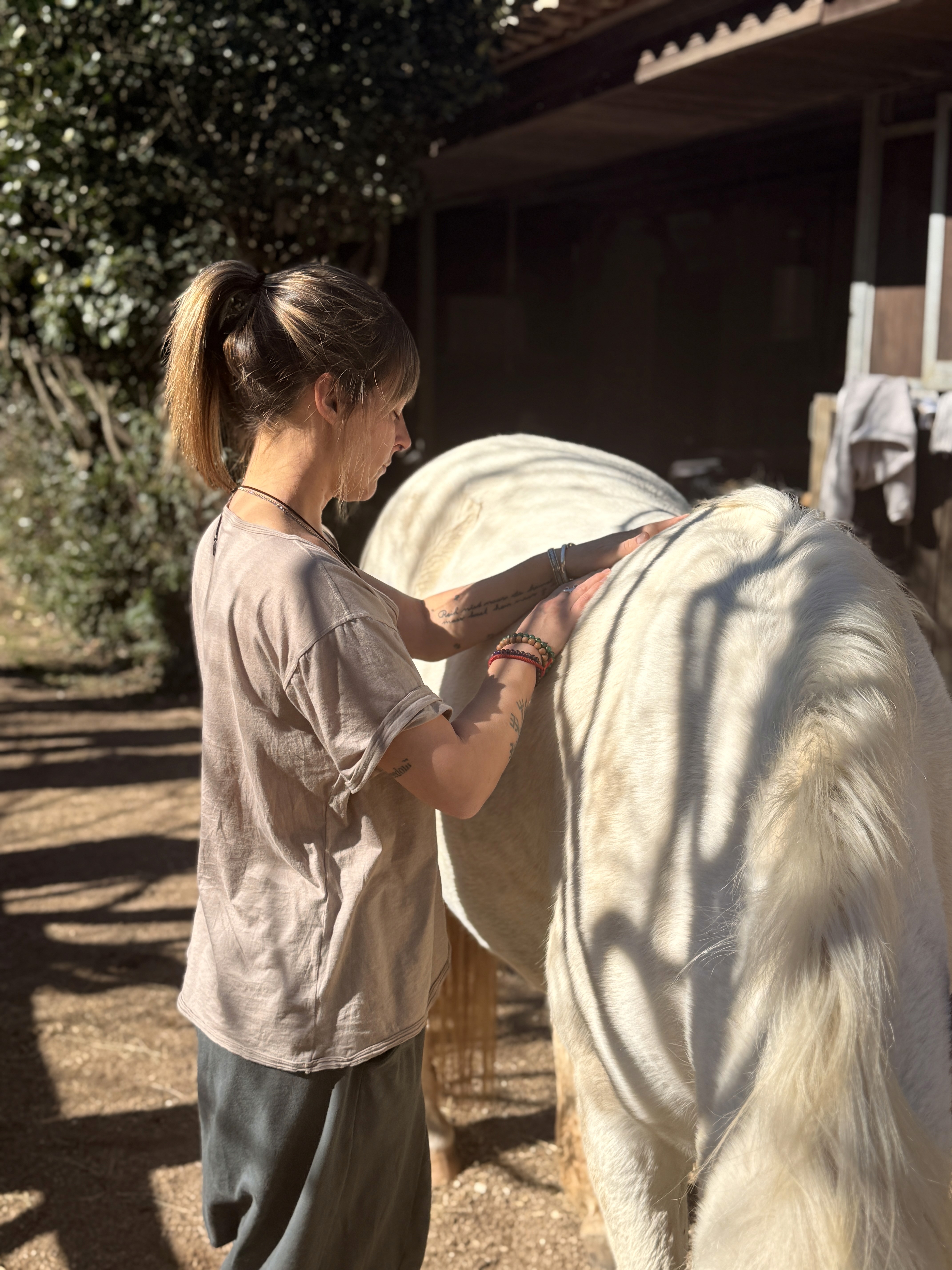 This time we explored the perspective of Traditional Chinese Medicine applied to the horse, guided by Silvia Acebes. Meridians, species-specific points, moxibustion, body awareness, breathing, Tai Chi… We approached care from a more subtle dimension, integrating body, energy, and presence.